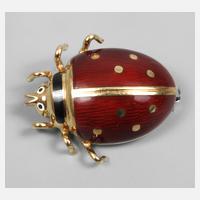 Italien, 2. Hälfte 20. Jh., Gelbgold gestempelt 750 und Nadel Silber 925, transluzid und opak emailliert, L 3 cm, G 8,3 g.