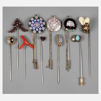 um 1900–1970, vorwiegend Doublé, vier davon Murano mit eingeschmolzenen Murrinen, eine Koralle, eine Schaumgold mit Onyx, 2 x Granat, eine mit Türkis und eine Grandelschmuck, verschiedene Erhaltungen, L max. 8 cm.