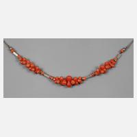 wohl 1930er Jahre, Silber gestempelt 925, das Mittelteil besetzt mit Doppelkorallen, L 40 cm, G ca. 6,3 g.