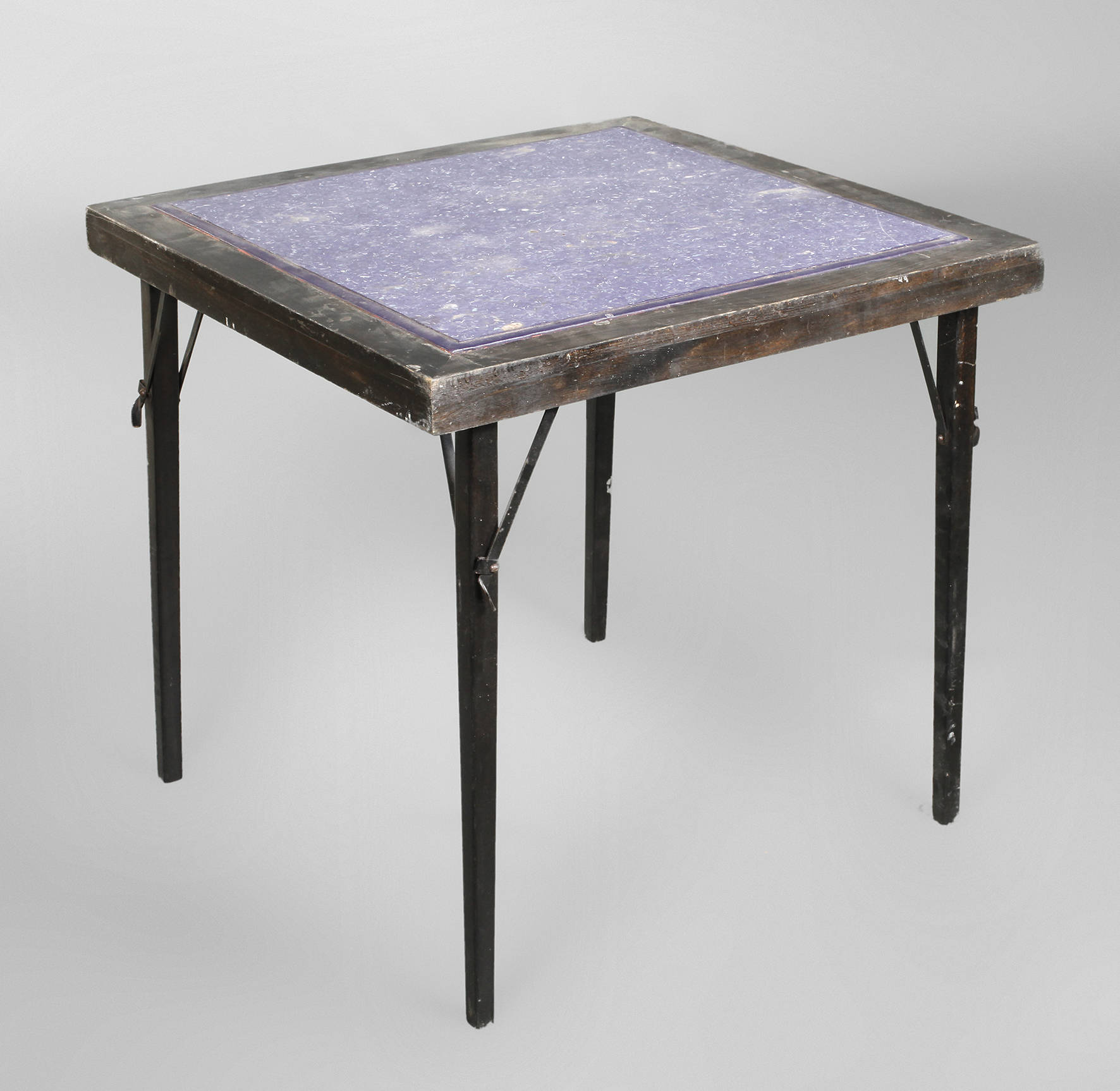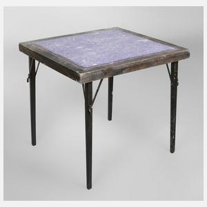 1930er Jahre, Modell T211, Buchenholz geschwärzt, quadratische Platte mit ausklappbaren Beinen, Einsatz der Platte später ergänzt, rest.bed., H 70 x B 75 x T 75 cm.