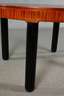 wohl Wien, um 1920, mahagonifurnierte Platte mit geometrisch intarsiertem Rand, runde, ebonisierte Beine, senkrecht gerippt, alt restauriert, Tisch war ehemals ausziehbar, minimale Furnierfehlstellen, etwas rest.bed., H 75, D 118 x 128 cm.