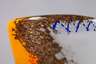 Entwurf um 1952, Ausführung Vetreria Aureliano Toso, dickwandiges Klarglas mit eingearbeiteten bunten Flecken, großem Stern sowie Netzglas, verlaufende Kupferaventurinkrösel, die konische Mündung flach gedrückt, gute unbeschädigte Erhaltung, H 26 cm.