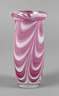 2. Hälfte 20. Jh., sign. B. Bellmann Bergdala-8432, klares Glas, plan geschliffener Stand, eingeschmolzene gekämmte Farbschicht in Weiß und Rosé, umgeschlagener Mündungsrand, von der Herstellung etwas blasig, H 21 cm.