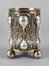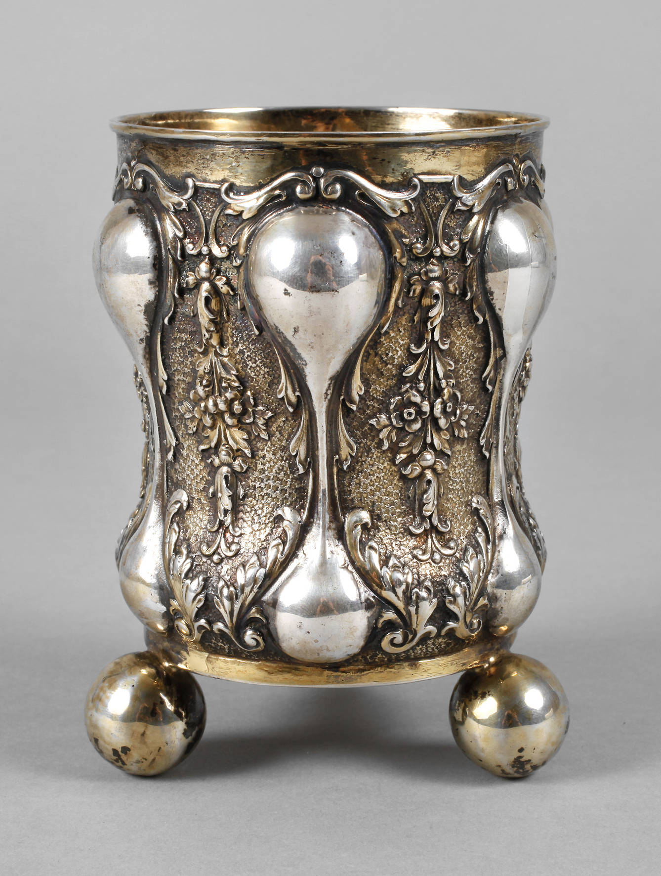 Mitte 20. Jh., Silber gestempelt Halbmond, Krone, 800, innen komplett und außen partiell vergoldet, verziert mit Floralmotiven und gebuckelten Tropfenformen, gute Erhaltung, H 14 cm, G ca. 381 g.
