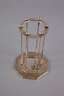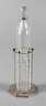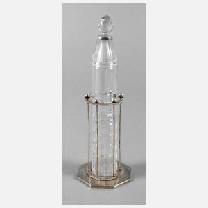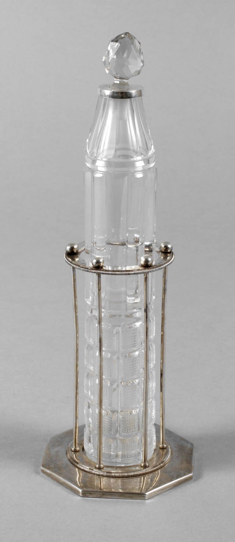 datiert 1825, Silberstempel mit A, 13 Lot, Gestell aus sechs Stäben auf oktogonal facettiertem Fuß, Kugelabschlüsse, eingesetzt Karaffe aus Klarglas mit feinem Steinelschliff, diese am Stand min. bestoßen, H 24,5 cm, G ohne Karaffe ca. 122 g.