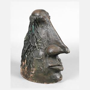 2. H. 20. Jh., unsigniert, Gipsguss dunkel gefasst, abstrahierendes Kopfstück eines Mannes mit karikativ überspitzten Gesichtszügen, Oberfläche mit Farb- und kleineren Substanzverlusten, H 45 cm.