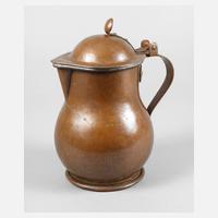 18. Jh., getrieben und innen verzinnt, verstärkter Fußring und Deckelkante, genietete Bänder, Gebrauchsspuren, H 27 cm.