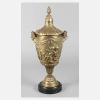um 1900, auf massivem schwarzen Marmorfuß, reich verziert mit Palmetten, seitlichen Widderköpfen und einem Fries aus tanzenden Putten bzw. Faunen, altersgemäßer Zustand, H 52 cm.