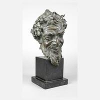 Ende 19. Jh., an der linken Halsseite signiert Gemito, Bronze hohl gegossen, dunkel und grün patiniert, Darstellung eines lächelnden, weinlaubbekränzten Faunes, auf schwarzen Marmorsockel montiert, minimale Altersspuren, sonst gute Erhaltung, H 31,5 cm, H gesamt 42 cm. Künstlerinfonfo: (1852 bis 1929), Quelle: Internet.