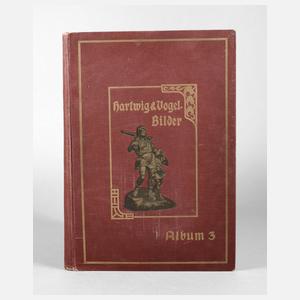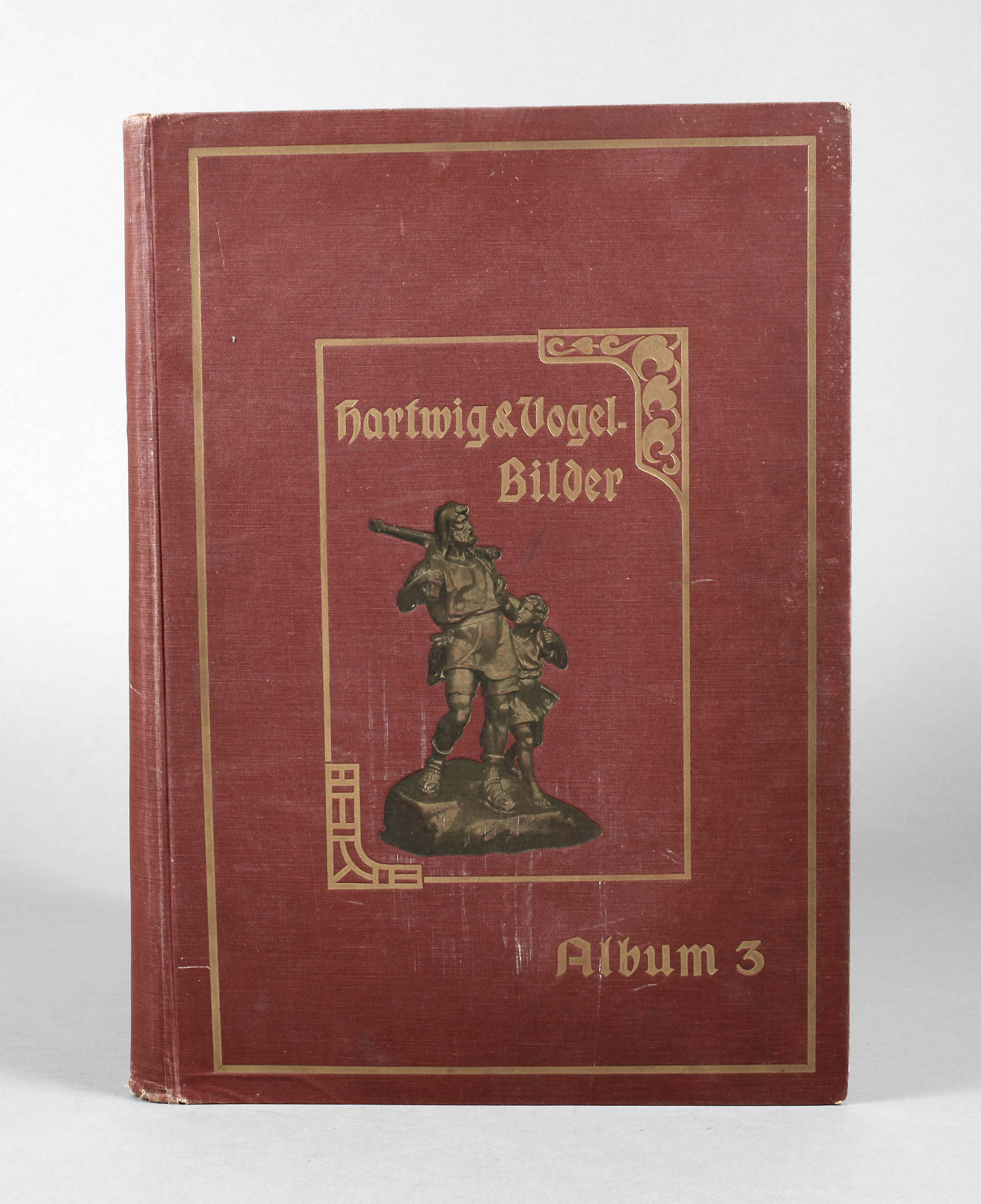 Hartwig & Vogel-Bilder, Album 3 (Serie 60 bis 120), Dresden, 1909, orig. Einsteckalbum mit Inhaltsverzeichnis sowie Beschreibung der einzelnen Bilder, lückenhaft befüllt mit ca. 320 chromolithogr. Bilder, darunter 49 (der 61) Serien à sechs Bildern, Leineneinband mit dekorativer Goldprägung und Bezeichnung, Alters- und Gebrauchsspuren, Maße Album 42 x 30 cm.