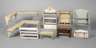 Anfang 20. Jh., Holz untersch. farbig lackiert, bestehend aus sechs Wandregalen in versch. Stilen, darunter Tuchhalter mit drei Emailschildern, einer Bank und zwei über Eck führenden Wandbords für ein trapezförmiges Puppenküchengehäuse, untersch. Alters- und Gebrauchsspuren, Eckregal ca. H 10 x B 22 bzw. 30 x T 7 cm.