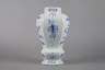 wohl Braunschweig, um 1750, am Boden gepinselte Marke M oder W, leicht rötlicher Fayencescherben mit kobaltblauer Scharffeuermalerei auf hellem Fond, fein gemalte Darstellung eines tanzenden Paares in Küstenlandschaft, im Hintergrund Boote, Gitterdekor, Blüten und reliefierte Rocaillen, seitlich Blütenranken, rückseitig ein Blatt mit gewundenem Band, Fuß und Mündung achteckig mit ornamentalem Dekor, an der Mündung ein restaurierter Ausbruch und minimale Glasurfehlstellen, etwas Alterscraquelé, H 32 cm.