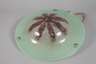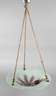 1930er Jahre, an drei Kordelbändern abgehängte Klarglasschale mit Pulvereinschmelzungen in Bordeaux und Grün, einflammig alt elektr., Altersspuren, H ca. 100 cm, D ca. 50 cm.