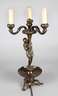 um 1930, ungemarkt, Bronze dunkel patiniert, Leuchterträger als Schaft, geschweifte Arme mit blattartigen Verzierungen, alt elektrifiziert, Fuktion nicht geprüft, H 55 cm.