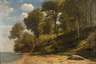 sommerlicher Blick über einen Küstenstreifen mit üppiger Vegetation und belebten Licht- und Schattenspiel unter leicht bewölktem Himmel, detailreiche, locker aufgefasste Landschaftsmalerei, Öl auf Leinwand, rechts unten signiert und datiert „A. Fritz 1880“, rückseitig Aufkleber mit handschriftlicher Nummer „10. 828-“, gerahmt, Falzmaß ca. 64,5 x 96,5 cm. Künstlerinfo: dänischer Maler und Fotograf (1829 Mou bei Aalborg bis 1906 Louisenhof bei Marselisborg), 1845-1855 Studium an der Akademie Kopenhagen bei Emmerik Lucian Hoegh-Guldsberg (durch Militärdienst zwischen 1848-53 unterbrochen), 1855 Studienreise nach Paris, anschließend in Aarhaus ansässig, Quelle: Weilbach und Thieme-Becker.