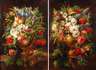 dekorative Arrangements mit Weintrauben, Rosen, Getreideähren und anderen Blüten in bauchiger Vase, lasierende mitunter pastose Dekorationsmalerei, Öl auf Papier und Leinwand um 1900, unsigniert, gering restaurierungsbedürftig, als Pendants gerahmt, Falzmaß je ca. 70 x 50 cm.