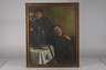 Blick ins dämmrige Interieur mit zwei trinkenden und Pfeife rauchenden jungen Männern, minimal pastose Malerei des Jugendstil in zurückhaltender Farbigkeit, Öl auf Leinwand, links unten signiert und datiert ”K. Hildebrandt 1912”, rückseitig auf dem Spannrahmen in Blei bezeichnet ”M. Hildebrand”, original hinterlegte Leinwandstelle, reinigungsbedürftig, kleines Löchlein gering restaurierungsbedürftig, gerahmt, Falzmaß ca. 81 x 65 cm.