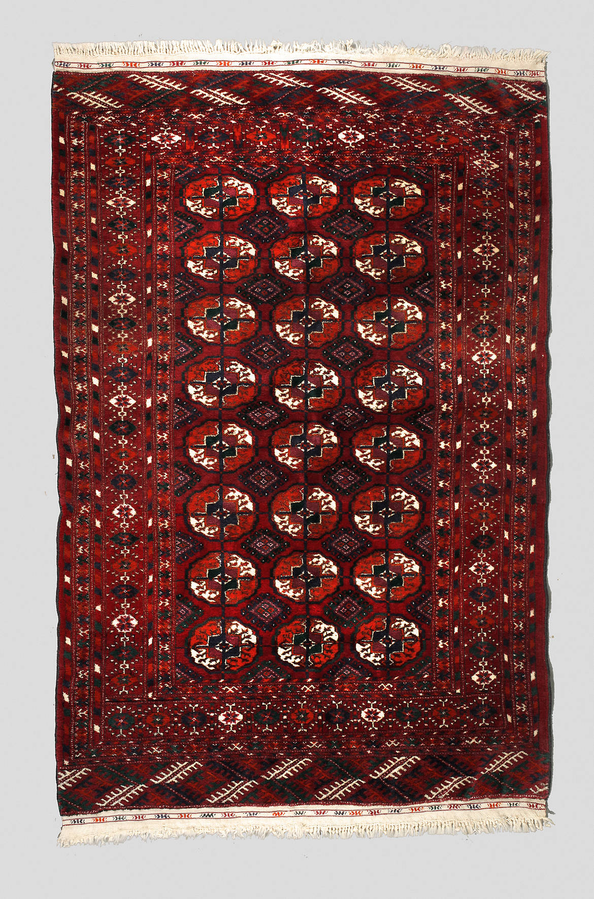 2. Hälfte 20. Jh., typischer Dekor über intesiv rostrotem Grund, gute Erhaltung, Maße 152 x 102 cm.