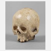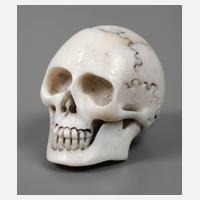Anfang 20. Jh., Bein geschnitzt, menschlicher Schädel, H 3,5 cm.