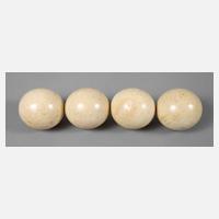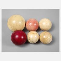 Ende 19. Jh., Elfenbein massiv, gedrechselt, teils farbig gefasst, untersch. Maße, partiell stärkere Altersspuren, D max. ca. 6 cm.