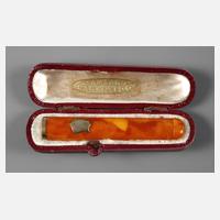 Anfang 20. Jh., trüber, goldgelber Bernstein mit Metallmontierung, Länge 13 cm, in Originaletui, gemarkt ”A. C. Schmidts W. Wien, Kissingen, Hamburg”.