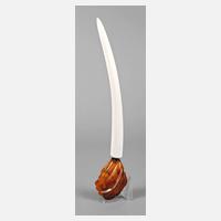 um 1930, facettierte Klinge aus Elfenbein, mit muschelförmig beschliffenem, massivem Bernsteingriff, Klinge winz. best., L 37 cm.