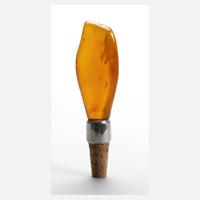 Ende 20. Jh., Metall und Kork, besetzt mit dunkelgelben, durchsichtigen Bernstein, allseitig geschliffen und poliert, Größe Bernstein ca. 9,5 x 4,2 x 2,4 cm, Gesamtlänge ca. 14,7 cm, Gewicht ca. 85 g.