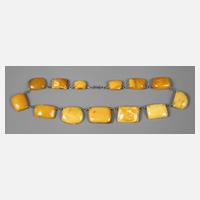 Mitte 20. Jh., 13 geschliffene Bernsteine mittels Kettengliedern aus Metall verbunden, Steingröße max. 25 x 32 mm, Kettenlänge 46 cm, Gewicht ca. 41 g.