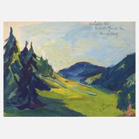 lichte, sommerliche Thüringer Gebirgslandschaft, in kraftvoller, warmtoniger Farbigkeit festgehaltene Landschaftsstudie, Gouache, um 1930, rechts unten signiert ”A. Wolfgang (mit Stern)” sowie rechts oben in der Darstellung in Blei betitelt ”Schwarzatal bei Obstfelderschmiede bei Oberweißbach”, geringe Altersspuren, ungerahmt, Blattmaß ca. 24,5 x 33 cm. Künstlerinfo: dt. Maler, Zeichner und Graphiker (1894 Arnstadt bis 1970 Gera), ab 1908 in Gera, hier kaufmännische Lehre, 1913–18 Wehr- und anschließend Kriegsdienst, während des Kriegsdienstes in Frankreich Hinwendung zur Malerei, 1919–30 kaufmännische Tätigkeit als Schokoladengroßhändler in Gera und parallel intensive, autodidaktische Beschäftigung mit Malerei, unternahm Studienreise nach Frankreich, beeinflusst von seinem Schwager Otto Dix sowie Alfred Ahner und Kurt Günther, Mitglied der spätdadaistischen Vereinigung ”pro pro bru (produktive-prominente-brummochsen)”, ab 1930 freischaffend als Maler, Mitglied im Reichsverband Bildender Künstler Deutschlands und im Thüringer Ausstellerverband Bildender Künstler, 1942–45 Kriegsdienst, 1945 Initiator der Künstlergilde Gera und bis 1950 deren Leiter, Mitglied im Verband Bildender Künstler (VBK) der DDR, hier zeitweise Jury- und Vorstandsmitglied im Bezirk Gera, 1961 Ehrung mit dem Kunstpreis der Stadt Gera, tätig in Gera-Untermhaus, Quelle: Dressler, Vollmer, Eisold ”Künstler in der DDR” und Internetseite der Stadt Gera.