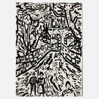 Szene auf den Hainberg über Gera-Untermhaus, mit Blick auf die ehemalige Brücke zum Schloss Osterstein, expressive Tuschpinselzeichnung in schwarz, partiell mit Korrekturen in weißer Gouache, um 1960, rechts unten in der Darstellung in Tusche sternförmig ligiert monogrammiert ”AW”, rückseitig Montierungsspuren, geringe Altersspuren, ungerahmt, Blattmaß ca. 42 x 29,5 cm. Künstlerinfo: dt. Maler, Zeichner und Graphiker (1894 Arnstadt bis 1970 Gera), ab 1908 in Gera, hier kaufmännische Lehre, 1913–18 Wehr- und anschließend Kriegsdienst, während des Kriegsdienstes in Frankreich Hinwendung zur Malerei, 1919–30 kaufmännische Tätigkeit als Schokoladengroßhändler in Gera und parallel intensive, autodidaktische Beschäftigung mit Malerei, unternahm Studienreise nach Frankreich, beeinflusst von seinem Schwager Otto Dix sowie Alfred Ahner und Kurt Günther, Mitglied der spätdadaistischen Vereinigung ”pro pro bru (produktive-prominente-brummochsen)”, ab 1930 freischaffend als Maler, Mitglied im Reichsverband Bildender Künstler Deutschlands und im Thüringer Ausstellerverband Bildender Künstler, 1942–45 Kriegsdienst, 1945 Initiator der Künstlergilde Gera und bis 1950 deren Leiter, Mitglied im Verband Bildender Künstler (VBK) der DDR, hier zeitweise Jury- und Vorstandsmitglied im Bezirk Gera, 1961 Ehrung mit dem Kunstpreis der Stadt Gera, tätig in Gera-Untermhaus, Quelle: Dressler, Vollmer, Eisold ”Künstler in der DDR” und Internetseite der Stadt Gera.
