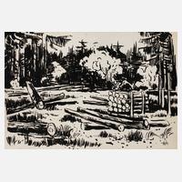 expressive Tuschpinselzeichnung in schwarz, um 1950, rechts unten in der Darstellung in Blei sternförmig ligiert monogrammiert ”AW”, geringe Altersspuren, ungerahmt, Blattmaß ca. 29,5 x 42 cm. Künstlerinfo: dt. Maler, Zeichner und Graphiker (1894 Arnstadt bis 1970 Gera), ab 1908 in Gera, hier kaufmännische Lehre, 1913–18 Wehr- und anschließend Kriegsdienst, während des Kriegsdienstes in Frankreich Hinwendung zur Malerei, 1919–30 kaufmännische Tätigkeit als Schokoladengroßhändler in Gera und parallel intensive, autodidaktische Beschäftigung mit Malerei, unternahm Studienreise nach Frankreich, beeinflusst von seinem Schwager Otto Dix sowie Alfred Ahner und Kurt Günther, Mitglied der spätdadaistischen Vereinigung ”pro pro bru (produktive-prominente-brummochsen)”, ab 1930 freischaffend als Maler, Mitglied im Reichsverband Bildender Künstler Deutschlands und im Thüringer Ausstellerverband Bildender Künstler, 1942–45 Kriegsdienst, 1945 Initiator der Künstlergilde Gera und bis 1950 deren Leiter, Mitglied im Verband Bildender Künstler (VBK) der DDR, hier zeitweise Jury- und Vorstandsmitglied im Bezirk Gera, 1961 Ehrung mit dem Kunstpreis der Stadt Gera, tätig in Gera-Untermhaus, Quelle: Dressler, Vollmer, Eisold ”Künstler in der DDR” und Internetseite der Stadt Gera.