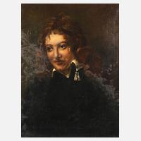 Brustbildnis einer jungen Frau mit Mühlsteinkragen, Kopie nach dem Gemälde ”Ehrendame der Infantin Isabella” von Peter Paul Rubens (1577–1640) aus dem Jahre 1625, zu welchen wohl die Tochter von Rubens Clara Serena Modell stand, lasierende Malerei, Öl auf Leinwand und Sperrholz, wohl um 1900, unsigniert, Craquelure und farbschwundrissig, gering restaurierungsbedürftig, schön im Stilrahmen gerahmt, Falzmaß 47 x 38,5 cm.