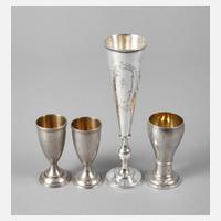 1. Hälfte 20. Jh., zwei polnisch, zwei russisch gestempelt 84 Zolotniki, einer innen vergoldet, drei mit floraler Gravur, Gebrauchsspuren, H max. 16,5 cm, G zusammen ca. 168 g.