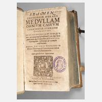 Examen theologiae moralis medulla omnium casuum ... authore Antonio Fernandes de Moure, sumptibus Petri Henningii, Coloniae Agrippinae, Format kl. 8°, 8 Blätter, 1142 S. und 9 Blätter, mit wenigen Vignetten, Grünschnitt, in Ledereinband, auf vier Bünden mit sehr dekorativer Deckelprägung und zwei intakten Messingschließen, stark gebräuntes Exemplar mit einigen Besitzerkennzeichen.