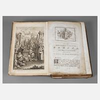 (A new history of the Holy Bible from the beginning of the world to the establishment of Christianity ...) von Thomas Stackhouse, Vorwort datiert Beenham in Berkshire, 7. April 1744, wohl printed for Stephen Austen London, Format Gr. 4°, VIII und 768 S. (engl. Text), mit Frontispiz und 15 Tafeln in Kupfer, davon eine gefaltet, einige in Kupfer gestochene Kopfvignetten sowie florale Initialen, in Ledereinband der Zeit auf sechs Bünden mit Rückengoldprägung, restauriertes, rep.bed. Exemplar ohne Titelblatt, ein Textblatt lädiert, insges. etwas fleckig und mit gelockerten Einbanddeckeln.