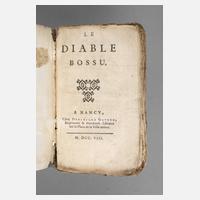 Le diable bossu, chez Dominique Gaydon, Nancy 1708, Format 12°, XVI S., 4 Blätter, 274 S. (frz. Text), mit wenigen Vignetten und Initialen, im Interimseinband, Exemplar mit Alters- und Gebrauchsspuren.