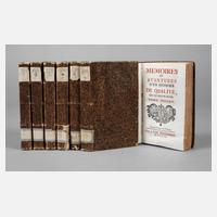 Memoires et avantures d´un homme de qualité, qui s`est retiré du monde, tome 1–7, (par Antoine Francois Prévost d'Exiles), chez J. Rod. Tourneisen, Paris 1751, Format 12°, je Band 142 bis 262 S. (frz. Text), mit einem Frontispiz in Kupfer, Rotschnitt, in gleichen Pappeinbänden der Zeit, Exemplare mit minimalen Alters- und Gebrauchsspuren, Einbandrücken mit Bibliotheksetiketten.