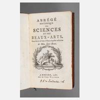 Abrégé historique des sciences et des beaux-arts, pour fervir de fuite à l'encyclopédie enfantine, de Mlle. Los-Rios, chez les Freres Walther, Dresde 1785, Format Kl. 8°, 2 Blätter, 192 S. (frz. Text), mit Titelvignette und einer Textabb. in Kupfer, Lesebändchen und Rotschnitt, im Pappeinband der Zeit, gut erhaltenes Exemplar der Erstauflage, Vorsatz mit handschriftl. Annotation.