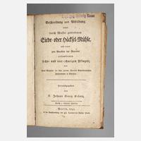 Beschreibung und Abbildung einer durch Wasser getriebenen Siede- oder Häcksel-Mühle, und eines zum Umackern des Getreides erfundenen sechs- und vier-schartigen Pfluges, hrsg. von D. Johann Georg Künitz, nebst zwei Kupfer-Tafeln, in der Buchhandlung des geh. Commercien-Rathes Pauli, Berlin 1793, Format 8°, 32 S., mit zwei gefalteten Tafeln, im Pappeinband der Zeit, Alters- und Gebrauchsspuren, dazu Zeichnung einer Schneide-Maschine, loses Blatt, mehrfach gefaltet und mit hinterklebtem Einriss.