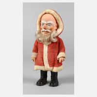 DDR, ungemarkt, Kunststoff, Kurbelkopf mit ausdrucksstarken Gesichtszügen, geschlossenem Mund, gemalten blauen Augen und Mohairbart, Arme beweglich, in orig. Filzkleidung, Uhrwerk intakt, ohne Schlüssel, angestaubter Zustand, Attribute fehlen, L 24 cm.