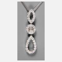 um 2000, Weißgold gestempelt 750, drei frei bewegliche Elemente besetzt mit 36 Brillanten und neun Diamanten im Princess-Cut, gesamt ca. 0,45 ct, Länge 35 mm, an Kette Weißgold gestempelt 14 K = 585/1000, Länge 40 cm, Gesamtgewicht ca. 6,5 g.