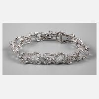 Ende 20. Jh., Weißgold gestempelt 750, floral und durchbrochen gearbeitete Glieder, besetzt mit zahlreichen Brillanten und Diamantrosen von ca. 1,0 ct in mittlerer Qualität, Verschluss als verdecktes Kastenschloss mit Sicherheitskettchen, Armbandlänge ca. 18,5 cm, Gewicht ca. 23,3 g.