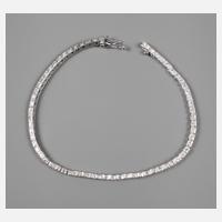 Ende 20. Jh., Weißgold geprüft 585, zierliches Armband besetzt mit zahlreichen Brillanten im Gesamtgewicht von ca. 0,6 ct in guter Qualität, Verschluss als verdecktes Kastenschloss mit Sicherheitsacht, Länge ca. 17,5 cm, Gewicht ca. 9,7 g.