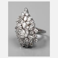 Ende 20. Jh. Weißgold 585 geprüft, sehr aufwendig gearbeiteter Ringkopf mit 9 Diamantnavetten, 10 Diamanttropfen und 24 Brillanten, zusammen ca. 4,5 ct, VVS/TW-W, Ringkopfhöhe 34 mm, RW 17 mm, Gewicht ca. 12,2 g.