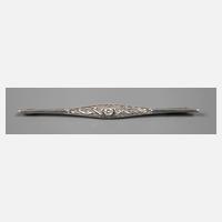 Anfang 20. Jh., Weißgold und Gelbgold geprüft 585, längliche Form, mittig mit Brillant von ca. 0,06 ct und winzigen Diamantrosen besetzt, Länge 57 mm, rückseitig aufwendiger Sicherheitsverschluss, Gewicht ca. 3,2 g, in Etui von Ernst Reincke, Juwelier in Bernburg.