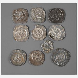 Braunschweig/Lüneburg ab 1140 und Überlingen/Reichsmünzstätte nach 1295, teilweise Ausbrüche, flach gedrückt.