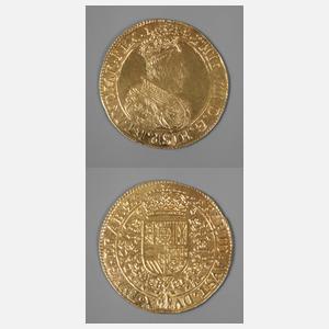 Doppelter Souverain d'Or, Herzogtum Philipp IV., in der Jahresangabe (zwischen 16 und 44) Hand, Delmonte 169, G 10,91 g, D 35 mm, Av. f.vz., kleiner RF über der ”4” (Henkelspur?), Rv. vz.+. Selten.