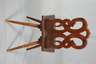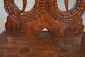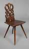 Ende 18. Jh., Nussbaum massiv, durchbrochen gearbeitete Lehne, in Form zweier verschlungener Schlangen, geschnitztes Besitzermonogramm CLML, Sitzfläche mit verfestigtem Trocknungsriss, guter stabiler Zustand, H 87 cm, SH 44 cm