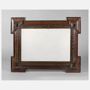 um 1880, Nussbaum furniert, zerlegbarer, zweitüriger Schrank mit Schubkasten, Kassettenfüllungen in Nussbaummaser furniert, an Zahnleiste verstellbare Regalböden, etwas rest.bed., Maße 192 x 100 x 54 cm.