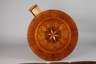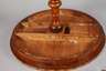 Norditalien, Mitte 19. Jh., runde Platte auf dreibeinigem Fuß mit gedrechselter Mittelsäule, mittels großer Holzschraube befestigt, Platte und Fuß reich verziert mit geometrischen Intarsien, in verschiedenen Edelhölzern wie Nussbaum, Nussbaumwurzel, Mahagoni und Ahorn, Zarge mit kleiner Schublade, guter Originalzustand, H 72 cm, D 69 cm.